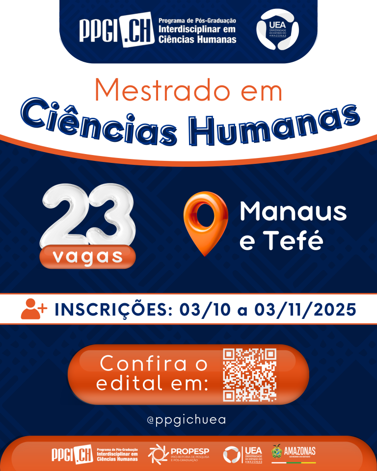 A Universidade do Estado do Amazonas (UEA) está com inscrições abertas para o Mestrado Acadêmico em Ciências Humanas, com ingresso previsto para 2026. O curso oferece um total de 23 vagas distribuídas entre os polos de Manaus e Tefé. O…