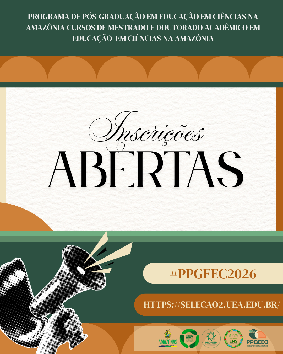 ✨🎉Inscrições abertas! Não perca a oportunidade de fazer parte de um dos maiores programas de pós graduação focado em educação em ciências na Amazõnia. 📚Confira o edital completo e prepare sua documentação! 🔗 Acesse: https://selecao2.uea.edu.br/?dest=info&selecao=13004