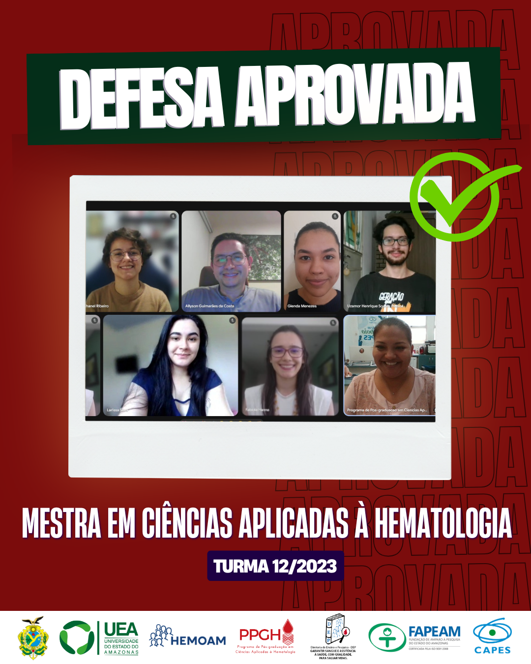 A Coordenação do Programa de Pós-graduação em Ciências Aplicadas à Hematologia UEA/HEMOAM parabeniza a aluna Thaís Lohana Pereira Ribeiro por sua aprovação na Defesa de Dissertação de Mestrado.