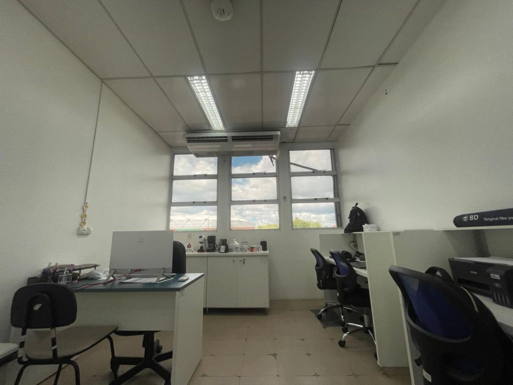 Área de pós-PCR: destinada a técnicas de análises de produtos de PCR e sequenciamento de DNA. Está equipada com: bancadas, balança analítica, pHmetro digital, forno de hibridização, mini spin, geladeira, jogo de pipetas mono e multicanal.