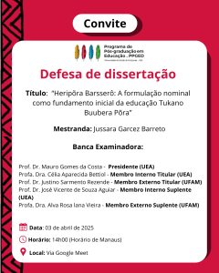 A defesa acontecerá dia 26 de março de 2025, às 10h00 (horário de Manaus) no Google Meet.