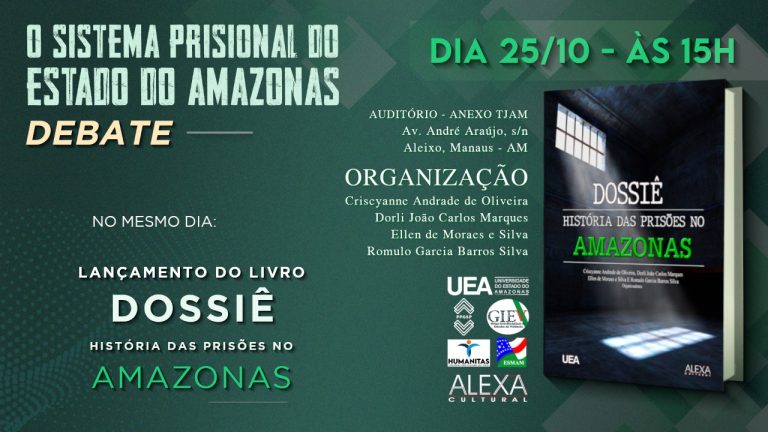 Lançamento do Livro \”Dossiê História das Prisões no Amazonas\” DEBATE: O Sistema Prisional do Estado do Amazonas. Dia 25/10, às 15h. Auditório Anexo TJAM